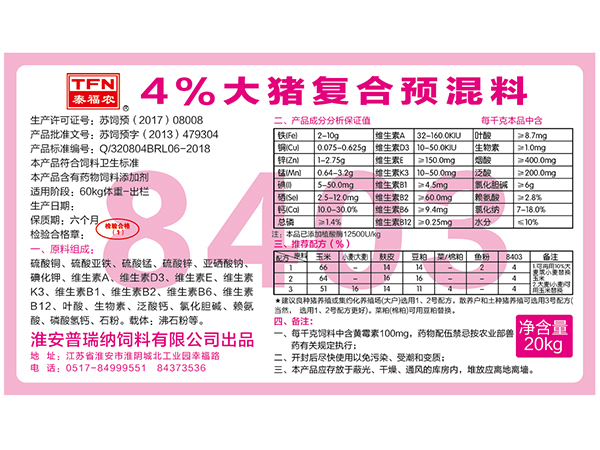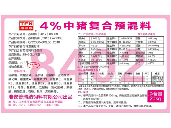 84系列4%豬預混料